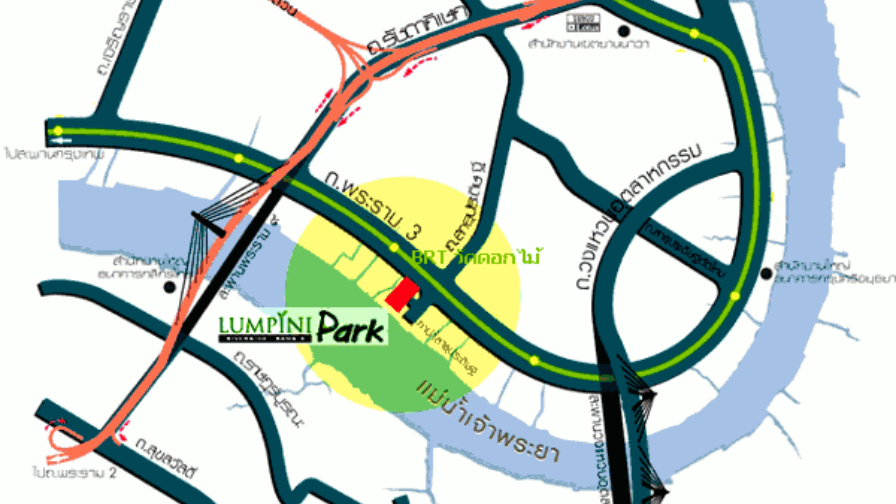 - ใกล้อาคารสำนักงานคิงส์บริดจ์ ทาวเวอร์, ธนาคารกรุงศรีอยุธยา สำนักพระรามที่ 3 และ ศุภาลัย แกรนด์ ทาวเวอร์