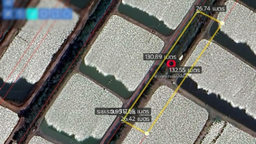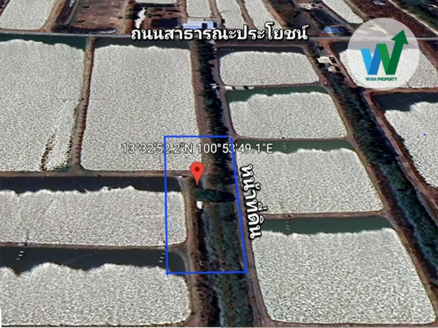 ลักษณะที่ดิน : เป็นที่ดินบ่อกุ้ง บ่อปลา เหมาะสำหรับธุรกิจบ่อตกปลา ตกกุ้ง เลี้ยงกุ้ง เลี้ยงปลา หรือร้านอาหาร หรือถมดินปลูกบ้านได้ สร้างบ้านพัก สร้างที่อยู่อาศัย หรือซื้อเก็บเป็นมรดกลูกหลาน ส่วนหน้าโฉนดแบ่งทำถนน กว้าง 4 เมตร เพื่อใช้เป็นประโยชน์ร่วมกันกับที่ดินแปลงอื่นได้