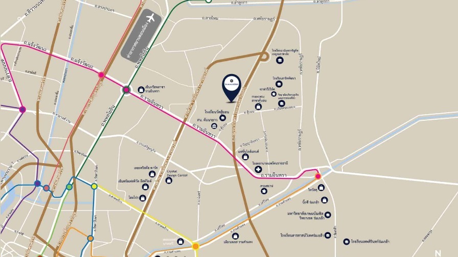 - ใกล้โรงพยาบาลสินเพทย์รามอินทรา, โรงพยาบาลนพรัตนราชธานี, โรงพยาบาลพญาไทนวมินทร์